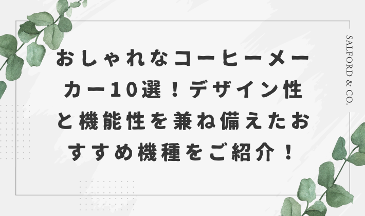 おしゃれなコーヒーメーカーは、デザインと機能性を兼ね備えており、インテリアにもぴったりです。以下は、おすすめの10選です。