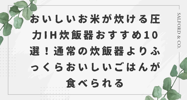 圧力IH炊飯器でお米を炊くと、ふっくらと美味しく仕上がり、手軽に使える点が人気です。そこで、おすすめの圧力IH炊飯器10選を紹介します。これらは、それぞれの特徴や価格帯に応じて幅広いニーズに応えられる製品です。 Cont … 続きを読む おいしいお米が炊ける圧力IH炊飯器おすすめ10選!通常の炊飯器よりふっくらおいしいごはんが食べられる